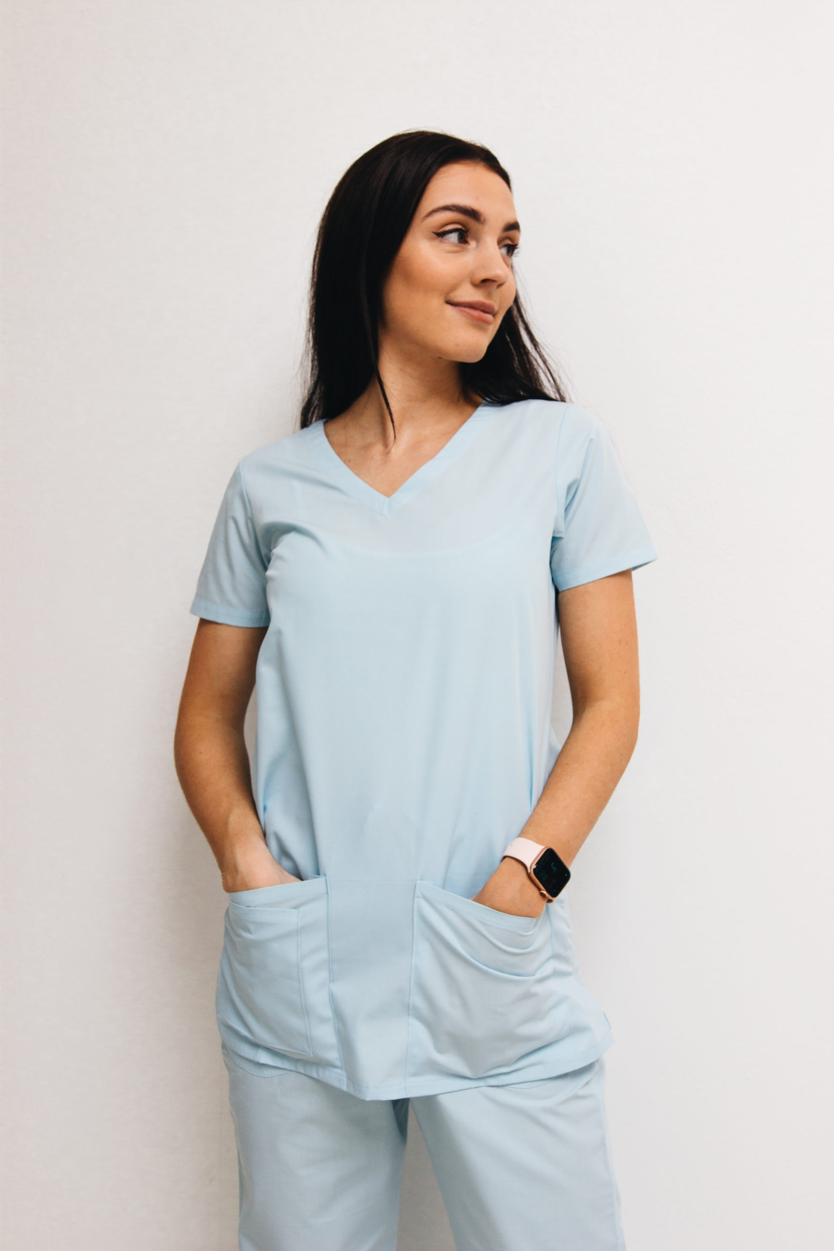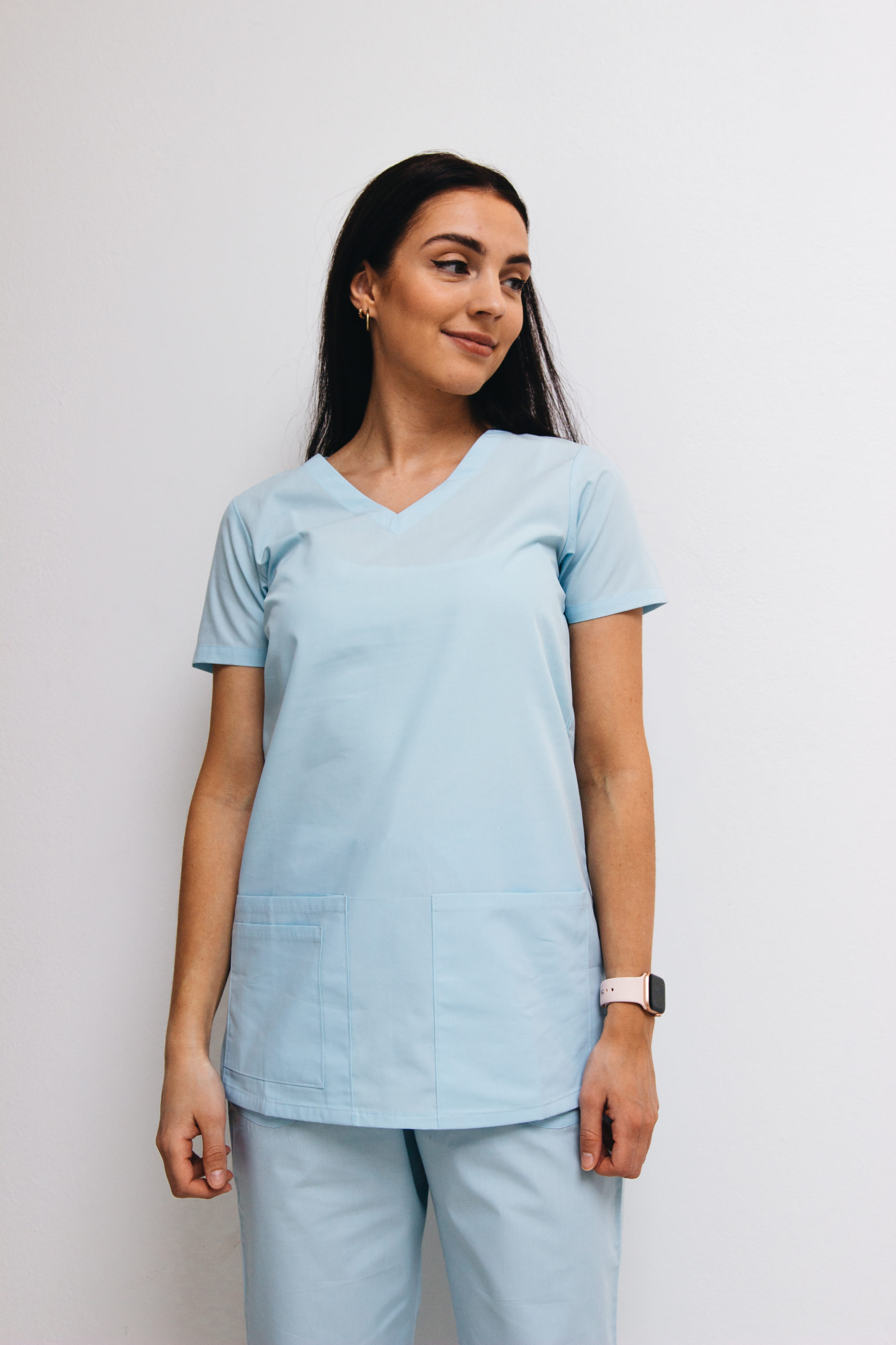 Women scrub set skyblue v-neck